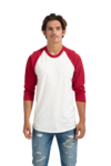 4.5 oz., 100% ring-spun USA cotton (unless otherwise noted) Reactive-dyed for longer lasting color Pre-washed to minimize shrinkage Tubular construction Contrasting color 3/4 raglan sleeves Ribbed crew neck Taped neck and shoulders to provide durability Double needle stitching on sleeves and bottom hem Overlock stitching on bottom hem Tear Anywhere label USMCA certified Note: Heather Grey is 90% ring-spun cotton/10% polyester. Other Heathers are 50% ring-spun cotton/50% polyester.
