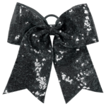 Sequin glitter bow with twill backing * 3" x 7.5" with 5.5" tail * 1" elastic hairband